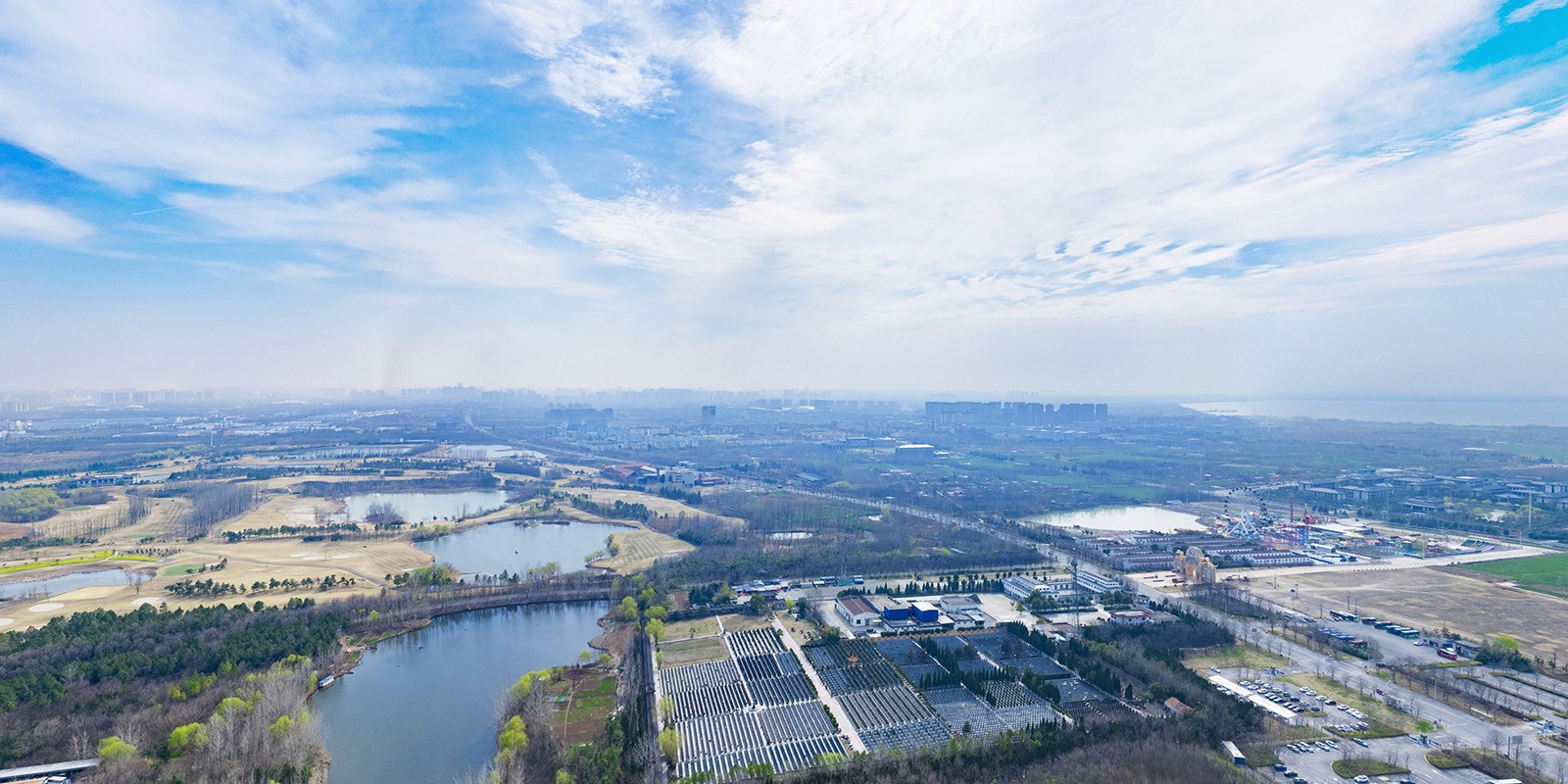 在此图中可以看到,远处有点雾蒙蒙的,是因为天气不好吧?当然不是,拍摄当天太阳很不错,但为何航拍就有雾呢,因为拍摄时间为3月,天气还没很暖和,所以经常会有雾,那为何拍视频的时候不会有这样的问题呢?原因是拍视频的时候主要在航拍的时候对着地面的不需要看到空中过远的地方,当然如果航拍视频对着远方,但在池州航拍VR全景的时候,空中720度反胃内的所有位置都能看到。